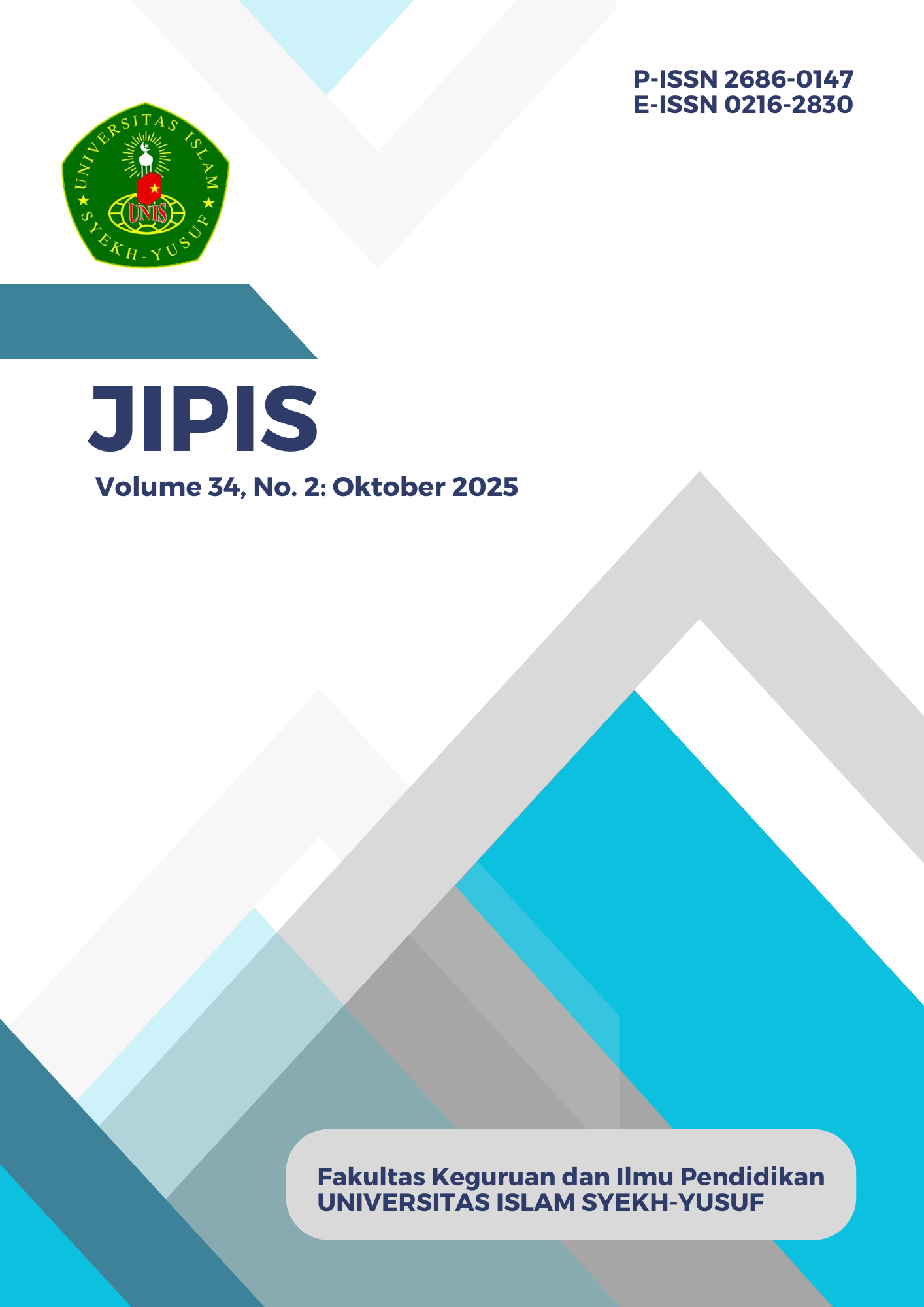 Vol. 34 No. 2 (2025)JIPIS merupakan jurnal ilmiah yang diterbitkan oleh Fakultas Keguruan dan Ilmu Pendidikan, Universitas Islam Syekh Yusuf Tangerang yang terbit dua kali setiap tahun, yaitu pada April dan Oktober. JIPIS menerima artikel berbahasa Indonesia atau Inggris yang berupa hasil penelitian maupun telaah teoritis di bidang ilmu pendidikan dan ilmu sosial.