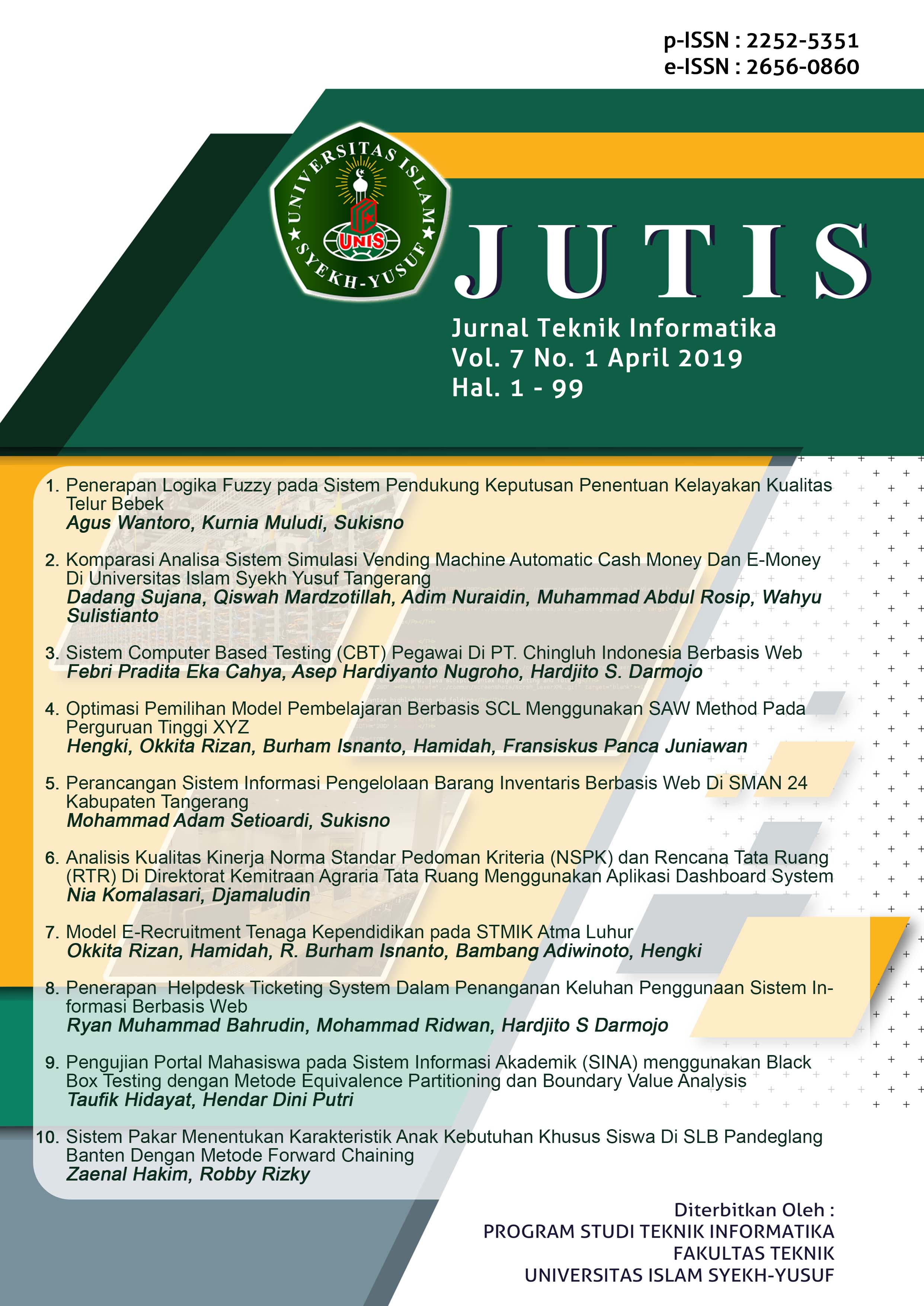 Vol. 7 No. 1 (2019): Jutis (Jurnal Teknik Informatika)